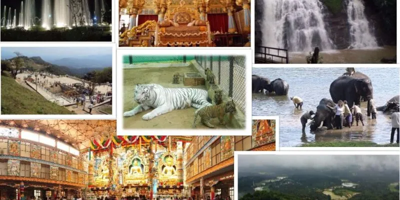 blends Mysore's royal history (Palace, Zoo, Gardens) with Coorg's (Kodagu) natural beauty (coffee estates, waterfalls like Abbey Falls, Tibetan culture at Namdroling Monastery)